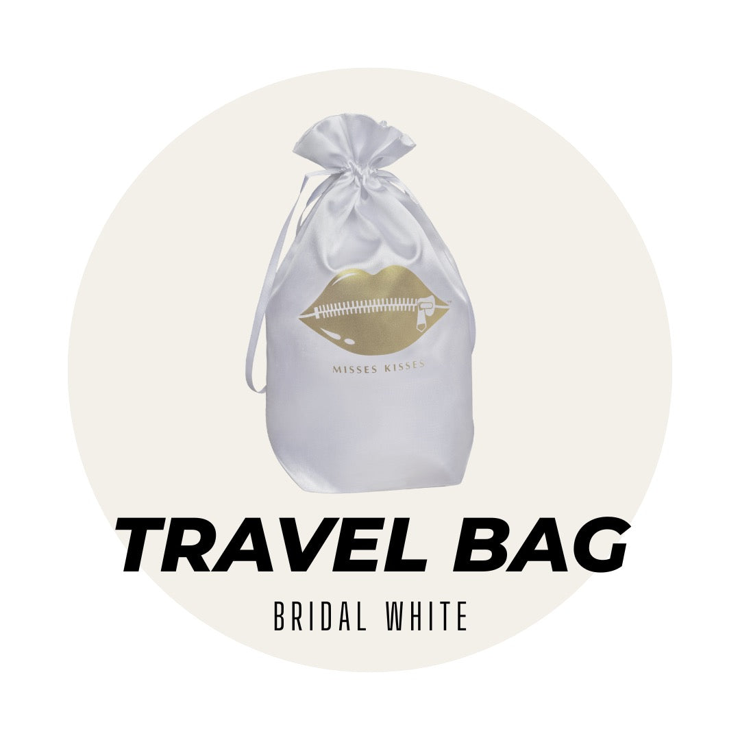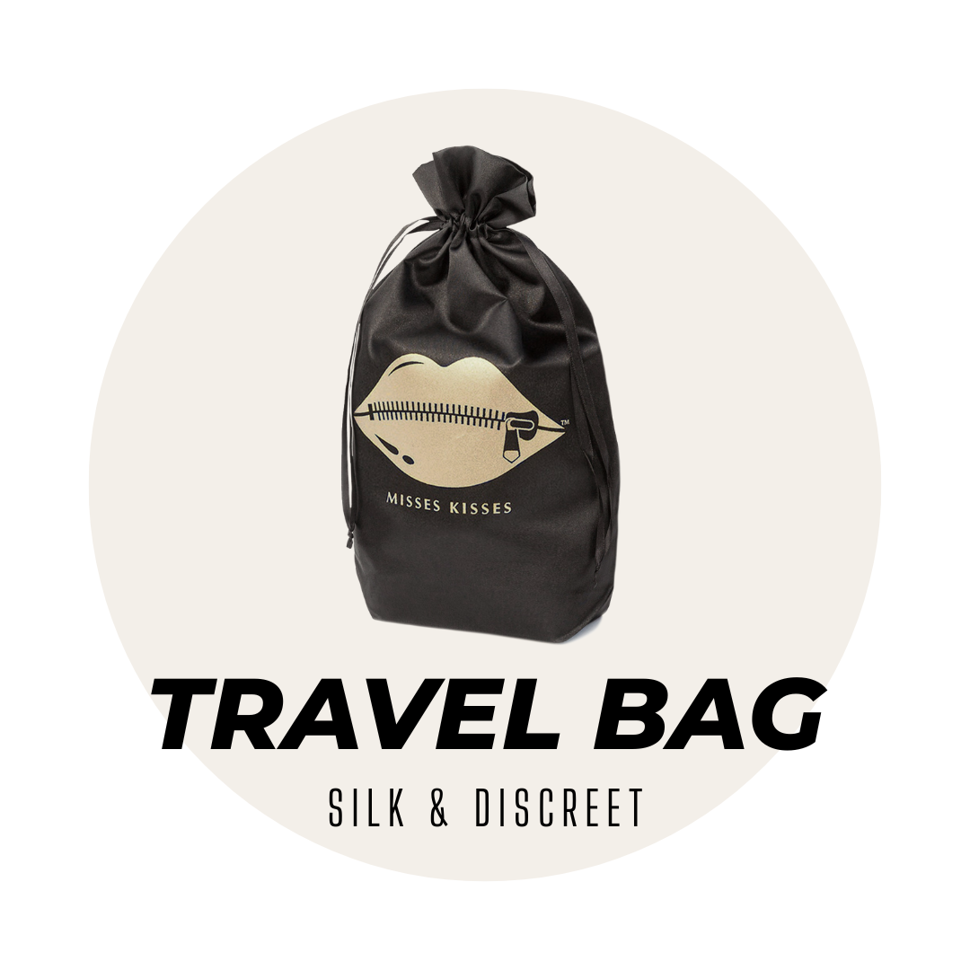 Safely store your Misses Kisses products in this sleek, branded drawstring travel bag.
