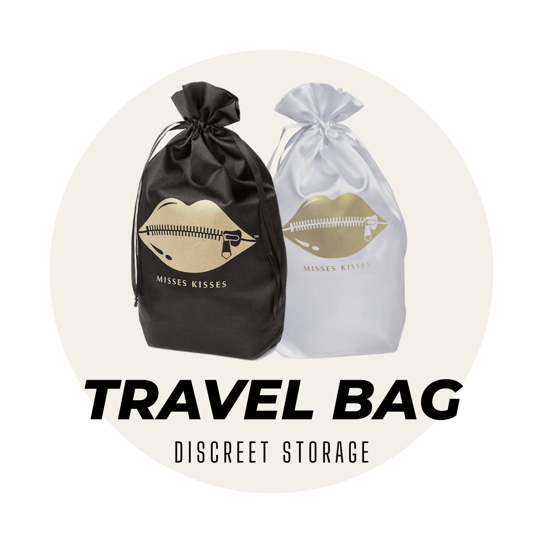 Safely store your Misses Kisses products in this sleek, branded drawstring travel bag.